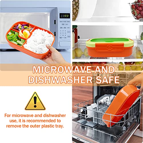 HONZUEN Lunch Box Bambini, Porta Pranzo Termico Per Bambini e Adulti, Portapranzo Ermetici con 3 Scomparti e Posate, Bento Box Sicuri per Microonde e Lavastoviglie Senza BPA, Arancione 1300ML