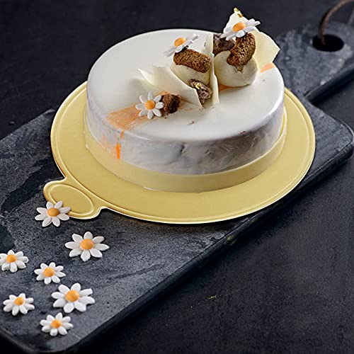 HONZUEN 100 Pezzi Mini Vassoi per Torte Rotondi, Tavole Rotonde per Mousse, USA e Getta Basi di Cartone per Torta, Cake Dessert Display Vassoio per Nozze Compleanno Partito(circa 8 cm) (d'oro)