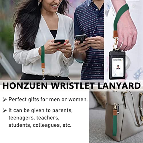 HONZUEN Wristlet Lanyard Strap Liscio con Clip Metallica e Vera Pelle, Laccetto Portachiavi Polso Resistente Agli Strappi Keychain Lanyard Strap per Portachiavi Porta Badge, Verde Scuro