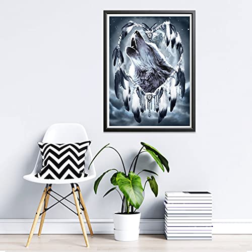 Hoobee DIY 5D Diamond Painting Kit Completo Drill Lupo Cacciatore Di Sogni, Pittura Diamante Fai Da Te Luna Animale, Punto Croce Kit Arte E Artigianato Per Casa E Pareti Decorazione 30x40 cm