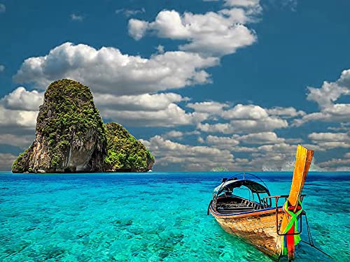 Hoobee DIY 5D Diamond Painting Kit Completo Drill Traghetto Piccola Isola, Pittura Diamante Fai Da Te Vacanza Paesaggio, Punto Croce Kit Arte E Artigianato Per Casa E Pareti Decorazione 30x40 cm