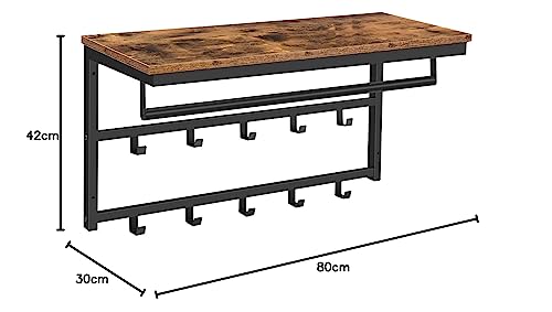 HOOBRO Appendiabiti da Parete, Attaccapanni da Muro con 10 Ganci, Mensola da Muro con Barra Appendiabiti, Mensola Portaoggetti, 80 x 30 x 42 cm, per Ingresso, Camera da Letto, Bagno EBF12YM01