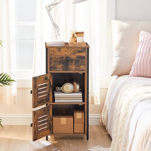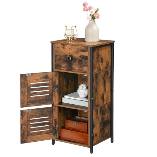 HOOBRO Armadietto, Comodino con ripiano Regolabile all'Interno e Cassetto, Credenza, Mobiletto, Tavolino, Multifunzionale, Industriale, Camera da Letto, Soggiorno, Cucina, Corridoio EBF15CW01