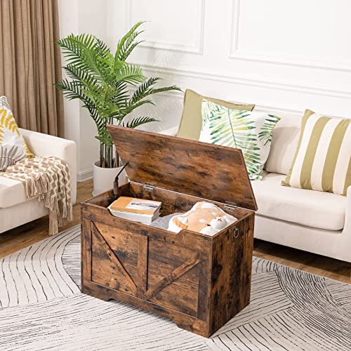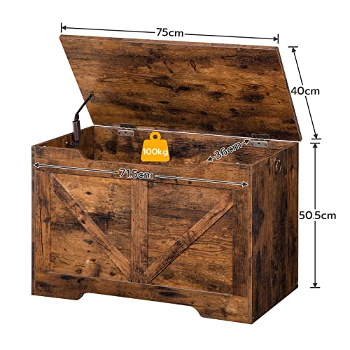 HOOBRO Cassapanca, Panca Contenitore per Bambini, con Cerniere di Sicurezza, Grande Piano, Manico Incorporato, Poggiapiedi, Baule per Giocattoli, Sgabello, Camera da Letto, Marrone Vintage EBF77CW01