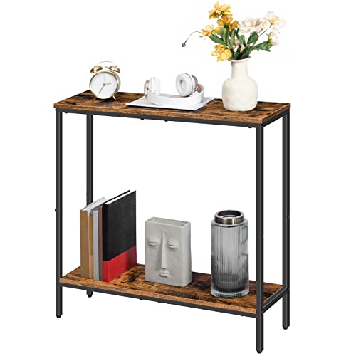 HOOBRO Consolle Ingresso, 75 x 22 x 75 cm Tavolo Console Stretto, Piccolo Tavolo per Decorazioni, Tavolino da Divano con Ripiano, Corridoio, Soggiorno, Marrone Vintage EBF22XG01