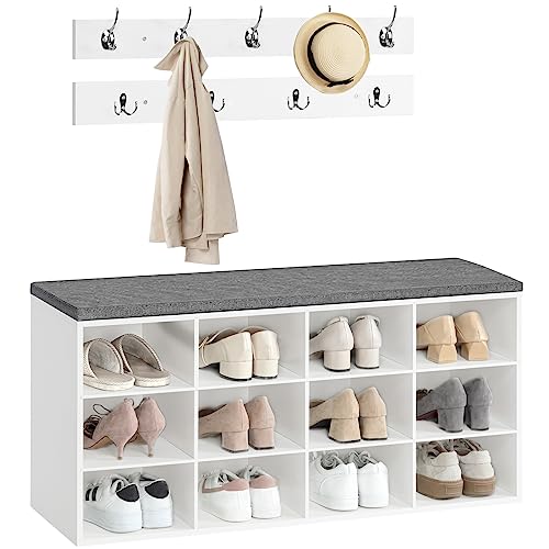 HOOBRO Panca Scarpiera, 100 x 30 x 48 cm, Panca Contenitore con Scomparti Aperti, Portaoggetti, Seduta Imbottita, Stabile, per Ingresso, Corridoio, Camera da Letto, Bianco EWT112HX01