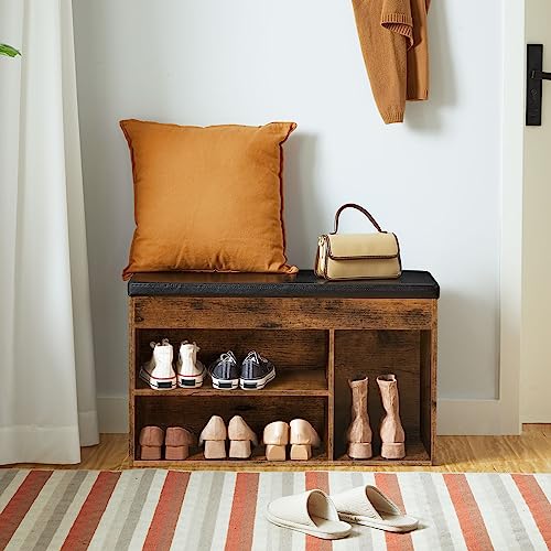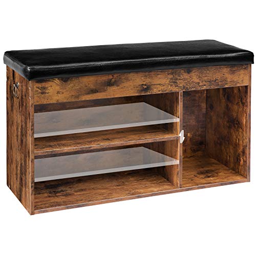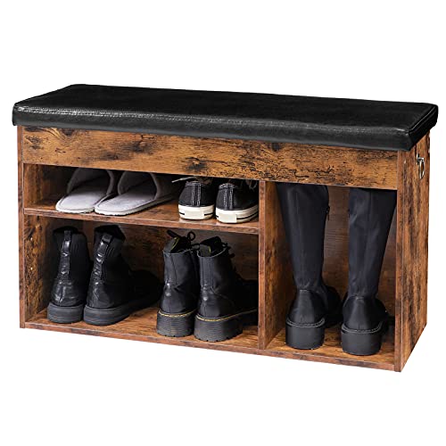 HOOBRO Panca Scarpiera con Ripiano Regolabile, 82 x 31,5 x 44 cm, Contenitore Portaoggetti, Seduta Imbottita, Stabile, per Ingresso, Corridoio, Camera da Letto, Marrone VintageEBF40HX01