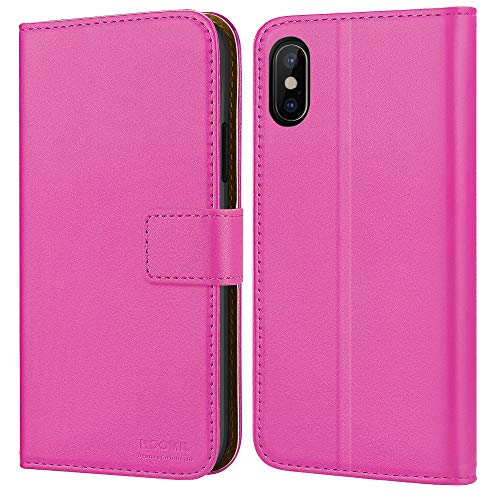 HOOMIL MagFlip Serie Cover per iPhone X, Cover per iPhone XS, [Pelle Premium] [No Crack] Protettiva per Portafoglio Flip Custodia per Apple iPhone X/XS (Rosa)