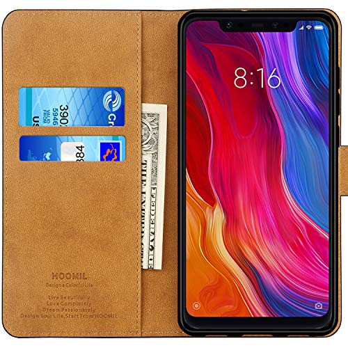 HOOMIL Pelle Premium Cover per Xiaomi Mi 8, Flip Case Custodia per Xiaomi Mi 8 Smartphone, Nero