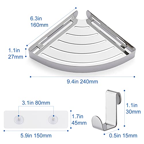 Hoomtaook Mensola da Doccia Senza Foratura Angolare Organizzatore Porta Sapone per Doccia in Acciaio Inossidabile SUS304 Montato a Parete Antiruggine con 4 Ganci,Argento 2 Pezzi