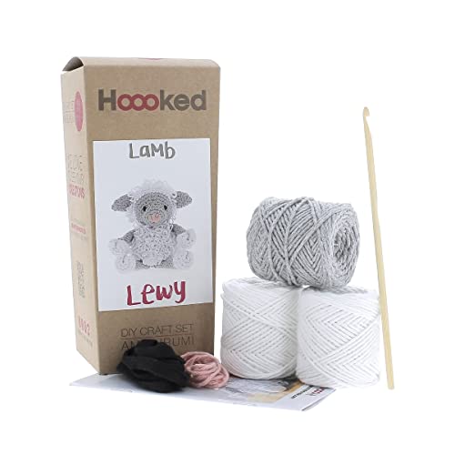 Hoooked Kit Uncinetto Lamb Lewy, Cotone, Bianco/Grigio, Taglia unica