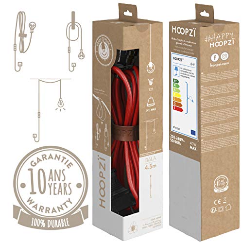 Hoopzi - Bala - Cavo Elettrico Tessuto - 36 Colori - 4,5 Metri - Portalampada E27 con interruttore - Lampade a Sospensione - Colore Rosso