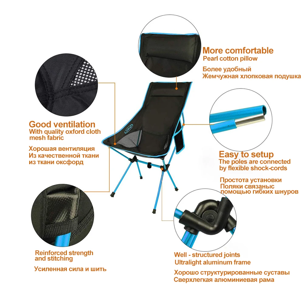 HooRu Folding Chair with Backrest Camping Beach Fishing Deck Chairs Backpacking Chair with Carry Bag Outdoor Garden Furniture