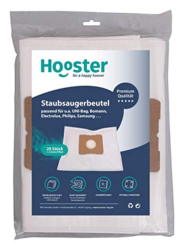 Hooster 20 sacchetti per aspirapolvere adatti per Progress Stuttgart PC 3716 / PC3716 / PC-3716 DB 1600W / con filtro aggiuntivo