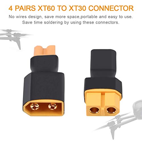 Hootracker 8pcs XT60 to XT30 Plug Female Male Adapter Converter for RC Lipo Battery FPV Drone Lipo NiMH Battery Charger ESC(4pcs Male XT60 to Female XT30 And 4pcs Female XT60 to Male XT30)