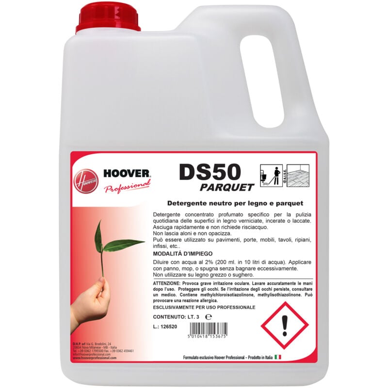 DS 50 Parquet è un detergente neutro concentrato specifico per la pulizia quotidiana dei pavimenti in legno. DS 50 Parquet asciuga rapidamente, non lascia striature o aloni e non richiede risciacquo. Non intacca né opacizza le pellicole protettive del parquet e aumenta la durata dei trattamenti di protezione. DS 50 Parquet è gradevolmente profumato . DS50 Parquet e' disponibile in canestro di plastica da 3L CAMPI DI APPLICAZIONE DS 50 Parquet viene utilizzato per la manutenzione quotidiana dei pavimenti in legno trattati. Può essere applicato sia su superfici verniciate che incerate. MODALITÀ DI IMPIEGO Diluire con acqua all' 1,5-2% (150-200 ml per 10 litri di acqua) e applicare con mop o straccio ben strizzati. Non è necessario risciacquare. CARATTERISTICHE TECNICHE - Composizione: solventi idrosolubili, tensioattivi non ionici, sequestranti, coloranti, profumi - Aspetto fisico: liquido trasparente di colore giallo verde - Odore: agrumato - Peso specifico: 1 - Ph: 9,5±0,2