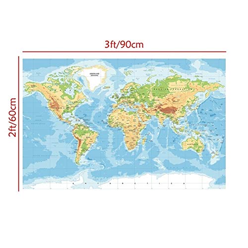 Hooweiwei. 1pc The World Political Physical Physical Map 90 * 60cm No-Fading Classic Edition Mappa del Mondo Senza Bandiera Nazionale Poster per la Cultura e Il Viaggio