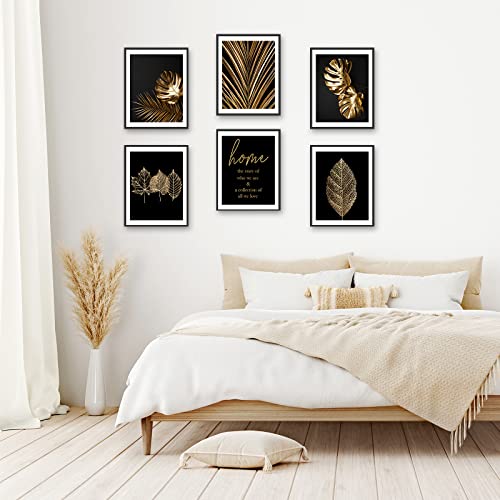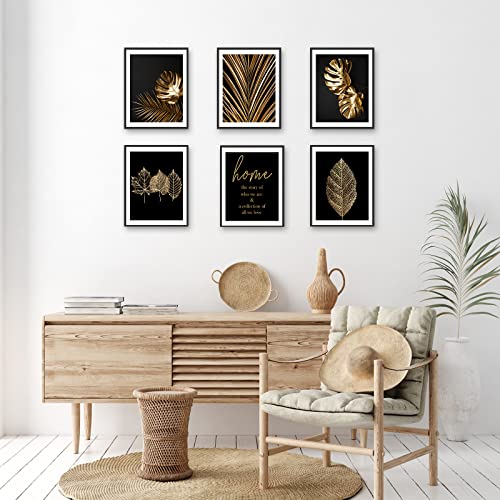 HoozGee, Set di stampe artistiche da parete con motivo botanico, colore nero e oro, con foglie di piante tropicali, poster da parete con stampa su tela (20 x 25,5 cm, senza cornice)
