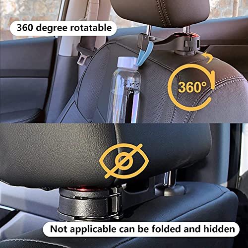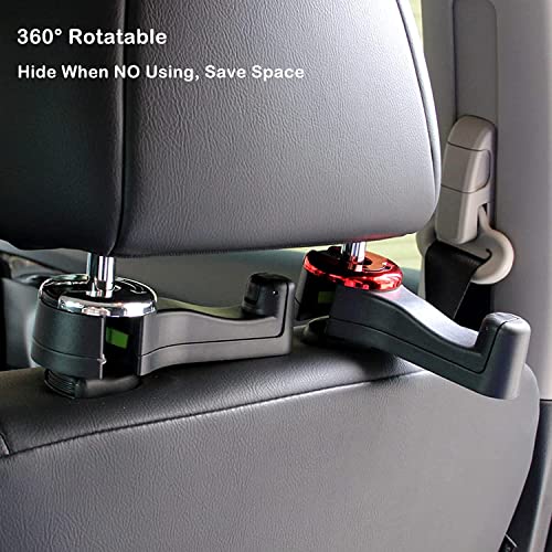 HOPASRISEE 2 in 1 Car Headrest Hidden Hook, 2023 New 2 in 1 Car Seat Headrest Hook, Universal 360°Rotation Headrest Hooks, Hidden Car Hook for Bag, Purse, Toys, Groceries, Hook (Red+Gold)