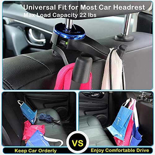 【Incredibile capacità di carico】 Il design 2 in 1 rende i ganci del seggiolino auto più resistenti dei normali ganci per auto (ogni gancio può sopportare 13 libbre, capacità di carico massima 22 libbre quando 2 in 1) e la funzione di blocco lo mantiene saldamente in posizione, che ti consente di appendere più borse su ciascun gancio, risparmiando più spazio per la tua auto.