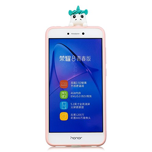 HopMore Compatibile con Cover Huawei P8 Lite 2017 Silicone Disegni 3D Divertenti Fantasia Gomma Morbido Custodia Antiurto Protettiva Slim TPU Case Bumper Molle Caso - Unicorno Unicorn Rosa