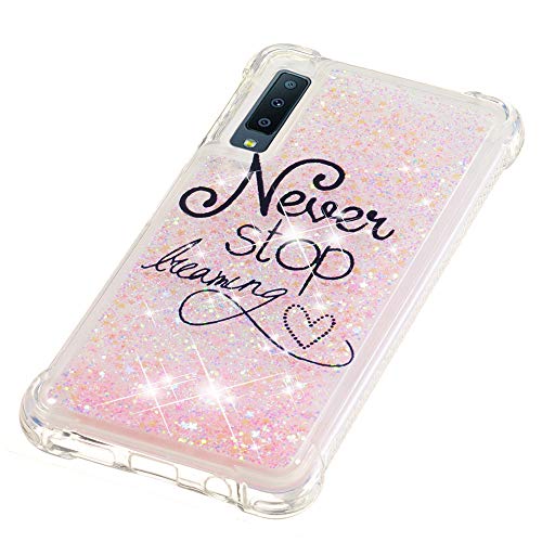 HopMore Compatibile con Cover Samsung Galaxy A7 2018 Silicone Morbido Brillantini Trasparente con Disegni Belle Custodia Trasparenti Antiurto Case Protettiva Brillante Glitter - Sogno Rosa
