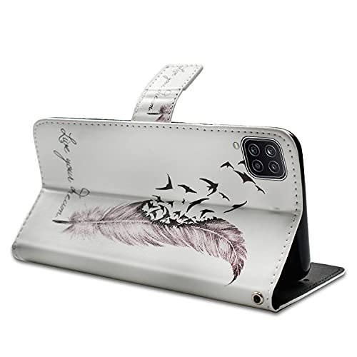 HopMore Cover a Libro per Samsung Galaxy A12 Cover in Pelle con Silicone Morbido Disegni Custodia Antiurto 360 Gradi Cover Pelle Accessori Portafoglio Wallet Case - Piuma