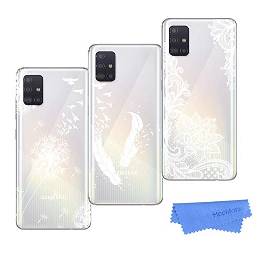 HopMore 3 Pack Cover per Samsung Galaxy A51 Silicone Morbido Trasparente con Disegni Panda Fiore Belle Custodie Trasparenti Antiurto Case Slim Protettiva Caso Molle - Fiore Di Tarassaco Piuma