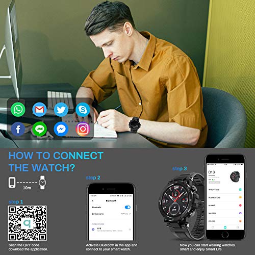【IP68 Impermeabile Smartwatch con Promemoria Informazione】Smartwatch ha un grado di impermeabilità IP68, impermeabile e antipolvere. L'orologio supporta chiamate in arrivo, messaggi di testo e promemoria di messaggi di applicazioni sociali. I messaggi da software social come Facebook, Twitter, Whatsapp, LinkedIn e Inst