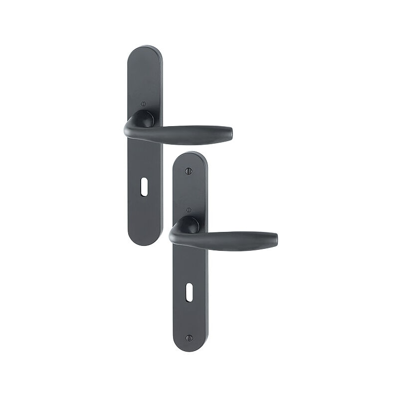 Dettagli: Ferramenta per porte HOPPE in alluminio su piastre lunghe, per porte interne: Certificato secondo la norma DIN EN 1906: 37-0140U, guarnizione per edifici pubblici ad alto traffico Montaggio: anelli di guida a montaggio libero che non richiedono manutenzione Connessione: quadrato di montaggio rapido HOPPE con quadrato pieno HOPPE (maniglie maschio/femmina) Piastre: montanti di fissaggio all'esterno, senza all'interno Fissaggio: a vista, foro passante, viti filettate M4 all'interno Caratteristiche: Categoria d'uso 3 Resistenza alla corrosione 4 Spessore della porta 38-47 mm Spessore quadrato 7 mm Distanza tra i fori 70 mm Viti in metallo