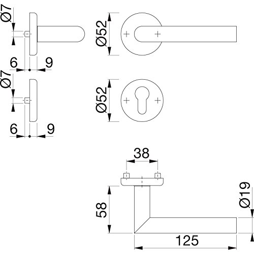 Hoppe Maniglia su rosetta Utrecht - Serratura a cilindro, per porte dello spessore di 39 - 47 mm, in acciaio inox opaco, 1 pezzi, 3882301