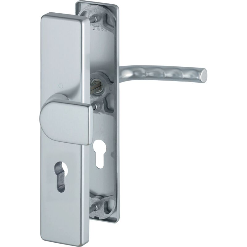 Set di scambio per porte di chiusura · Sottostruttura ZAMAK nella protezione esterna e interna · con pulsante fisso · Connessione pin profilo · Connessione a vite visibile · PZ · Alluminio · Schermo di altezza del bordo: 15 mm · DIN a sinistra