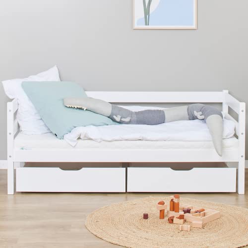 Hoppekids Lettino ECO Comfort 70x160 con rete a doghe e due cassetti | Bianco | Etichetta Nordic Swan Ecolabel | Legno di pino massiccio FSC® certificato dall'UE