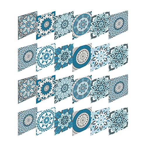 HORIWE Mosaico Muro Piastrelle Adesivi 24 Pezzi PVC Piastrelle Adesivi Marocco Autoadesivo Carta da parati Impermeabile Adesivi murali per la cucina, guardaroba, da tavolo (10x10cm(4"x4"),Blu2)