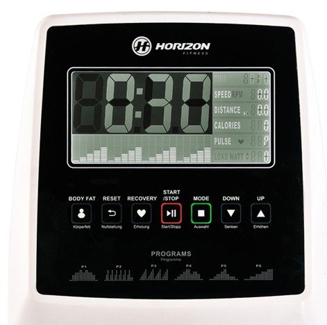14,7 cm Display LCD con profilo (tempo, distanza, velocità, calorie, giri/min, pulse, Watt, recupero e grasso corporeo)