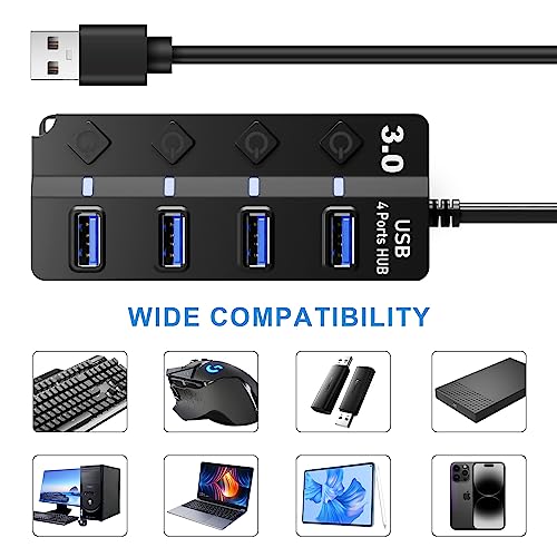 HORJOR Hub USB 3.0 Ciabatta Multi presa USB, 4 Porte Sdoppiatore USB con Singoli Interruttori e Spie LED