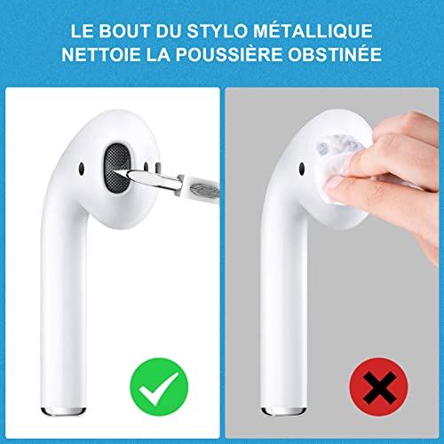 ✅【3 in 1 Penna Pulizia Airpods】Kit di pulizia 3 in 1, con spugna floccante, spazzola ad alta densità, punta in metallo. Design nascosto, più comoda da pulire.