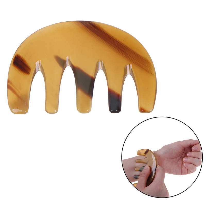 Horn Massage Comb Scrapping Comb Durable Smooth Ox Horn Five-tooth Massage Comb Scrapping Tool Massage Board for Women