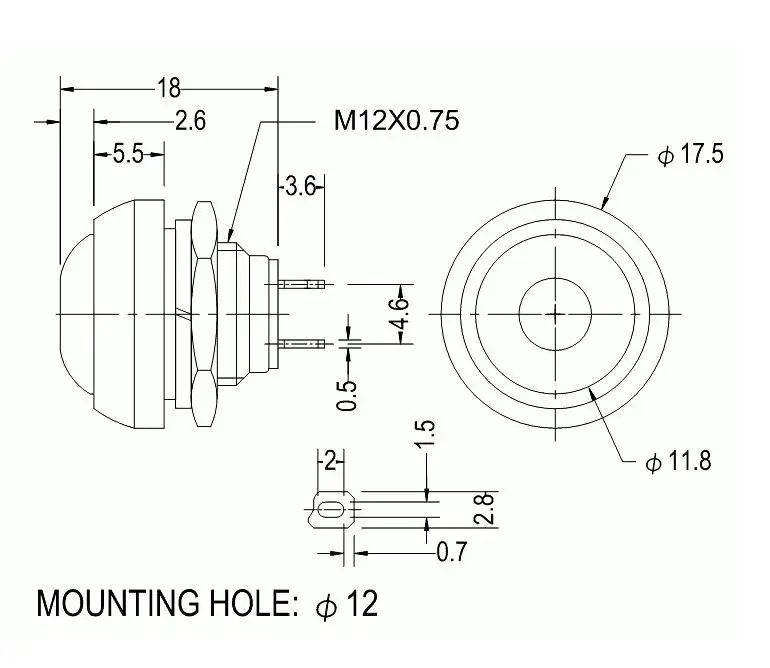 Horn switch PBS-33B 2Pin Mini Switch 12mm 12V 1A Waterproof momentary Push button Switch since the reset Non-locking
