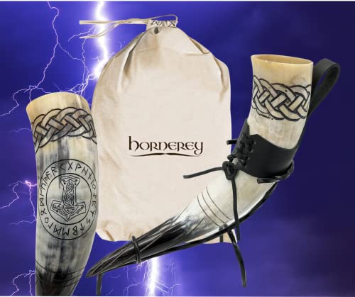 Corno inciso (incisione Wiking): il corno è rifinito con un'incisione di Thor Hammer Mjölnir. Il boccaglio è avvolto in un nodo nordico.