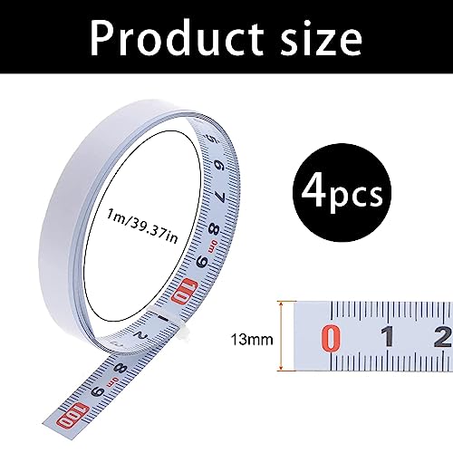 HORREX 4 Pezzi Metro Nastro Autoadesivo Acciaio Carbonio Metro Adesivo 1M,Metro a Nastro Metrico con Adesivo,per Tavoli da Falegnameria Macchine Scrivanie Bar Pareti - Fronte Centro Retro