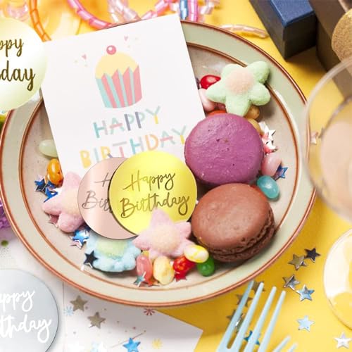HORREX 6 Pezzi Topper per Cupcake in Acrilico,Disco di Buon Compleanno in Topper per Cupcake in Acrilico a Specchio, Specchio Acrilico Decorazione per Torta di Buon Compleanno Topper