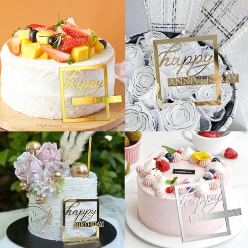 【Set di 6 Decorazioni Per Torta di Buon Compleanno】:Topper torta compleanno un set di 3 decorazioni quadrate per torta di buon compleanno,3 decorazioni rotonde per torta di buon compleanno, riceverai 6 diversi colori di decorazioni per torta di buon compleanno in oro, argento e oro rosa. offre più possibilità per la decorazione della tua torta.