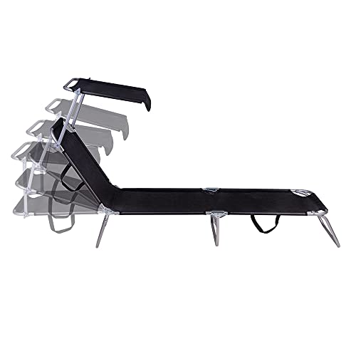 Hortan Enrico Coveri Lettino Prendisole Pieghevole Con Struttura Regolabile in Acciaio, Tetto Parasole e Seduta in Tessuto Textilene Per Giardino, Terrazzo, Piscina e Spiaggia