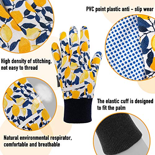Materiale morbido e traspirante: questi guanti da giardino da donna sono super leggeri e traspiranti. Il guanto da giardino è realizzato in 65% poliestere. Il nostro design di stampa è limone, foglie verdi e reticolato.