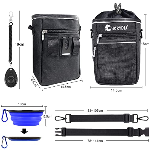 HORYDIA Borsa Addestramento Cane Regolabile Tracolla Impermeabile e Riflettenti Sacchetto di Cibo per Cani Con Ciotola Pieghevole e Clicker Facilmente Porta Cibo. (Nero)