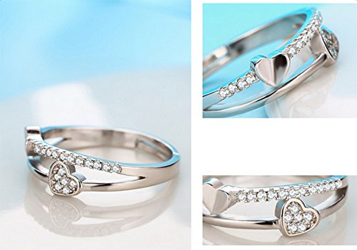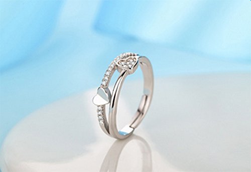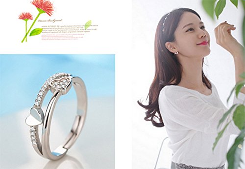 Hosaire - Elegante anello da donna a forma di cuore, in cristallo e argento, per matrimoni, regolabile