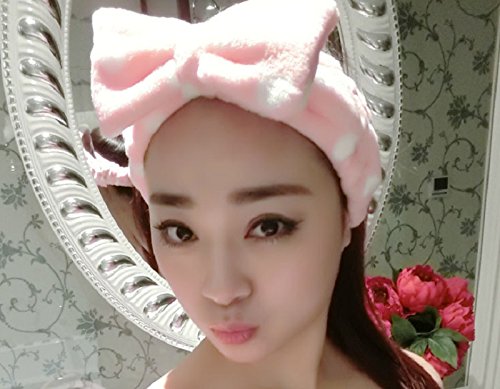 Hosaire - Fascia elastica per capelli a forma di fiocco, bella, a pois piccoli, da usare durante le cure del viso, il trucco, in bagno o per fare sport, colore: rosa