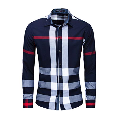 HOSD Camicia a Quadri Abbinata al Colore della Camicia a Maniche Lunghe in Cotone da Uomo