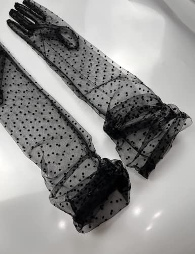 Hoseirty Guanti lunghi da donna in tulle per festa di nozze per la sposa 67,8 cm lunghezza del gomito Vintage puro Tea Party Serata Prom Opera Party Guanti, Pois nero., lunghezza del gomito